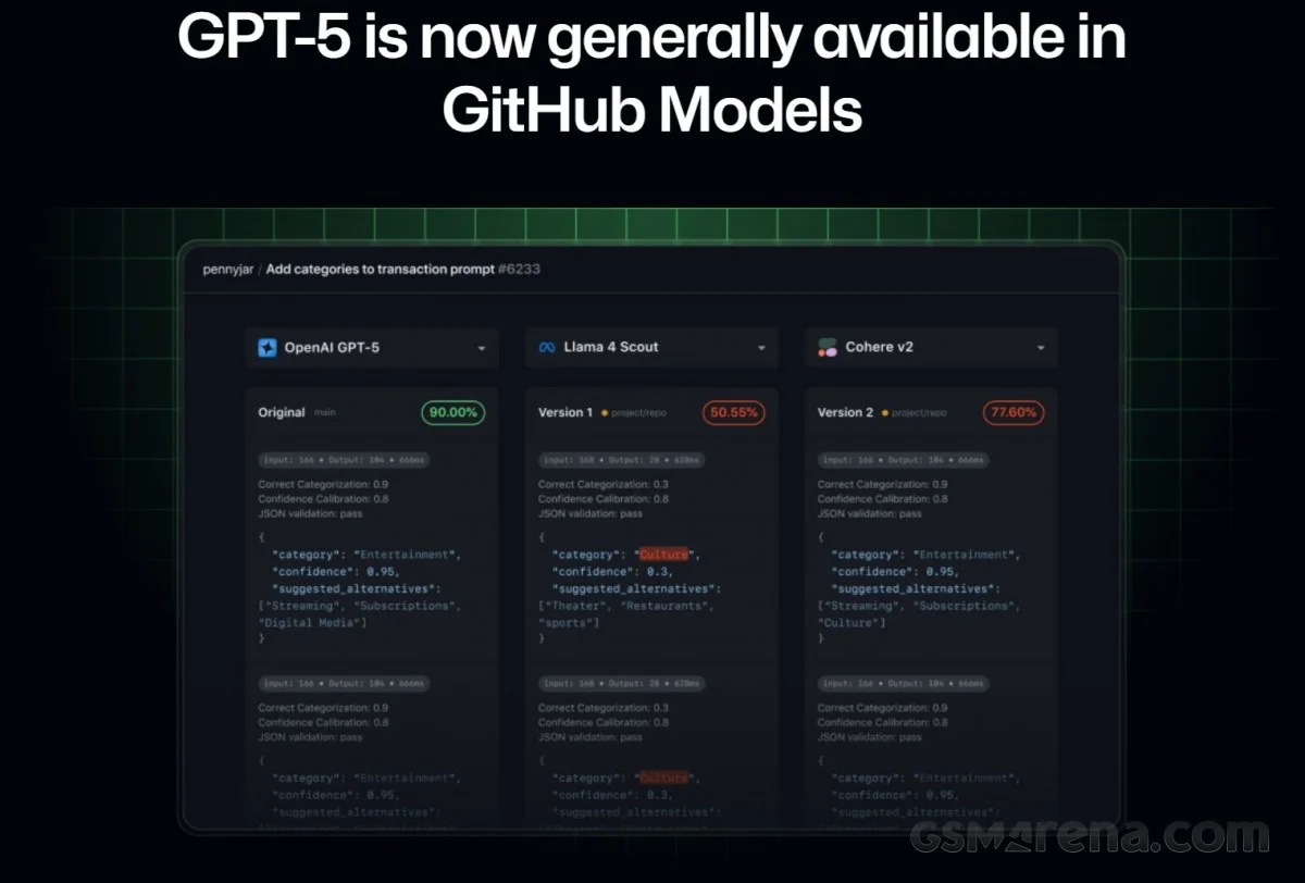 علاوه بر این، گیتهاب فاش کرد که GPT-5 چهار نسخه مختلف خواهد داشت: gpt-5، gpt-5-mini، gpt-5-nano و gpt-5-chat. نسخه gpt-5 برای انجام وظایف منطقی و چندمرحلهای طراحی شده است، در حالی که gpt-5-mini نسخهای سبکوزن و مناسب برای کاربردهای حساس به هزینه است.