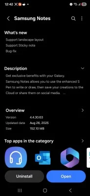 این قابلیتها در نسخه ۴.۴.۳۰.۶۳ Samsung Notes ارائه شدهاند. با این حال، در حال حاضر این نسخه تنها برای برخی گوشیهایی که بتای One UI 8 را اجرا میکنند در دسترس است. دستگاههایی با One UI 7 همچنان نسخه قدیمیتر اپلیکیشن را دریافت میکنند و حتی گوشیهای تاشوی جدید سامسونگ که بهطور پیشفرض با نسخه پایدار One UI 8 عرضه شدهاند، فعلاً قادر به دریافت این بهروزرسانی نیستند.