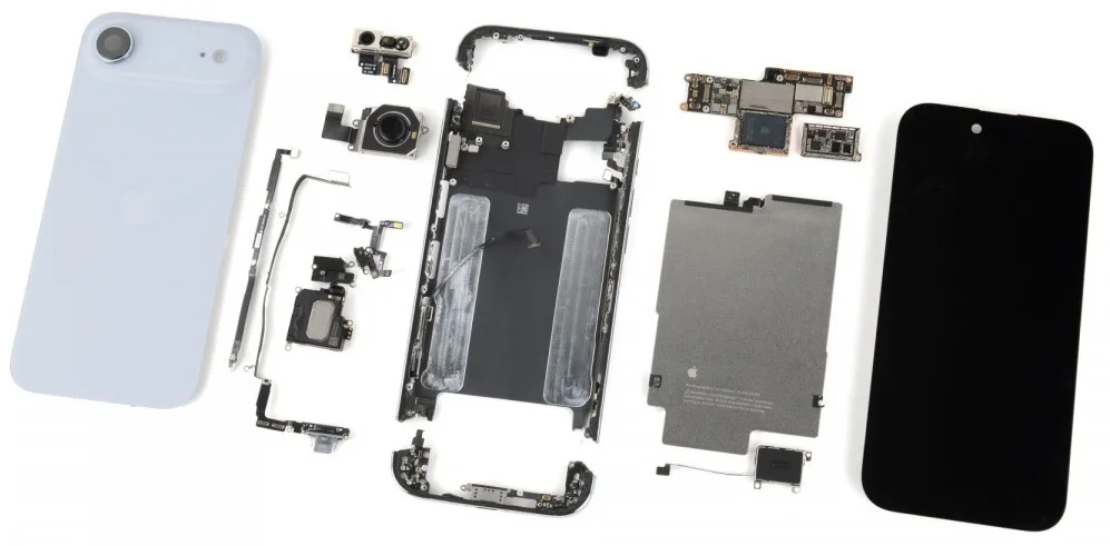 نخست آنکه برخلاف انتظار، باز کردن و تعمیر آیفون Air کار نسبتاً آسانی است و امتیاز قابلقبولی از iFixit دریافت کرده است. این گوشی همچنان از پیچهای خاص پنتالوب استفاده میکند و نمایشگر و شیشه پشتی آن با چسب ثابت شدهاند. با این حال، این موضوع در تمام مدلهای پیشین آیفون وجود داشته و برای متخصصان تعمیر چندان غافلگیرکننده نیست.
