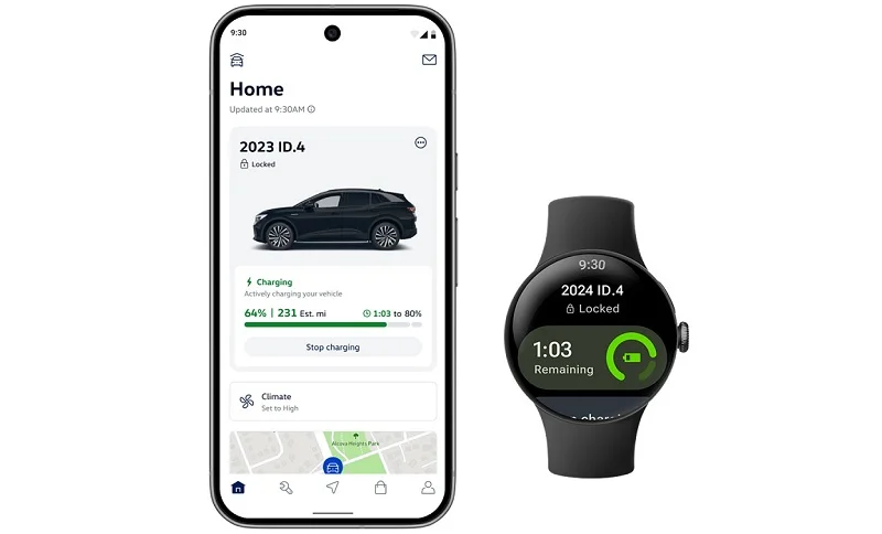 فولکسواگن اکنون از هر دو پلتفرم watchOS اپل و Wear OS گوگل پشتیبانی میکند و بخش عمده کاربران ساعتهای هوشمند را پوشش میدهد. از این پس، رانندگان میتوانند برخی قابلیتهای خودروی خود را با استفاده از Apple Watch یا ساعتهای Wear OS کنترل کنند. این قابلیت برای اکثر خودروهای فولکسواگن مدل 2020 به بعد فعال است.