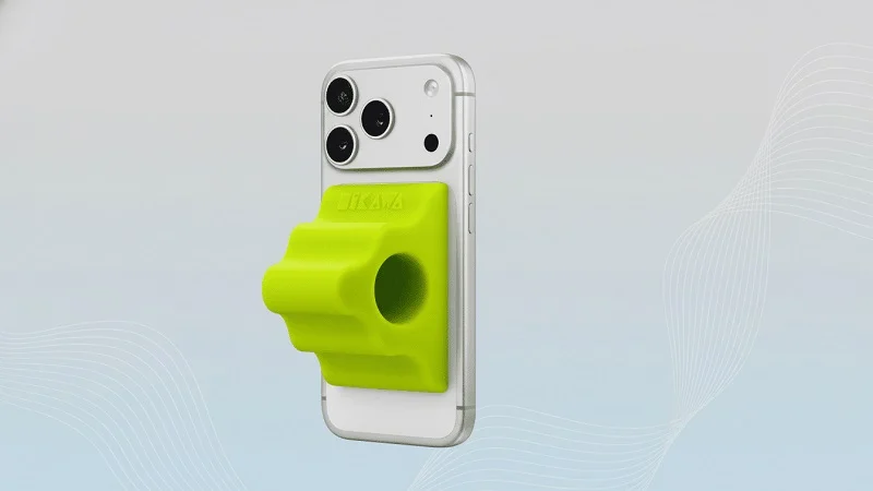 این گریپ که از فناوری MagSafe استفاده میکند، بهسادگی روی هر آیفون مجهز به مگسیف متصل میشود و قابلیت جدا شدن سریع را نیز دارد. علاوه بر این، بهعنوان یک استند نیز عمل میکند و امکان قرار دادن آیفون در دو زاویه دید مختلف را بهصورت عمودی و افقی فراهم میسازد. طراحی آن الهامگرفته از مجسمههای مدرن است.