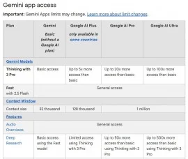 با این حال، طی روزهای اخیر گوگل این محدودیتها را تغییر داده و شرایط دسترسی اکنون نامشخصتر شده است. وبسایت رسمی تنها اعلام میکند که کاربران فاقد اشتراک Google AI Pro یا AI Ultra صرفاً دارای «دسترسی پایه» (Basic access) به Gemini 3 Pro هستند؛ شرایط مشابهی نیز برای Nano Banana Pro اعمال شده است.